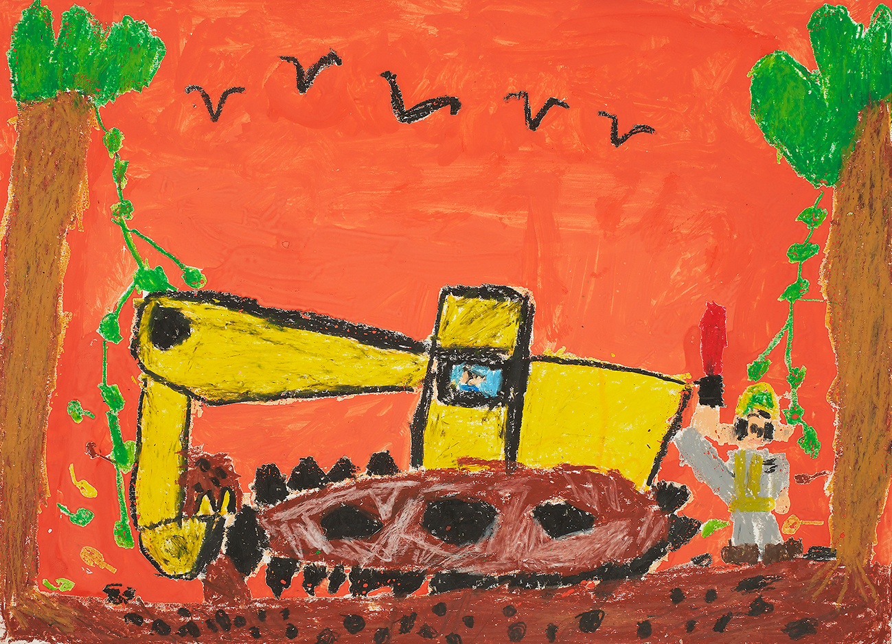 『お空でもがんばるショベルカー』 みのべ幼稚園 黑川 瑛麻(年長) |